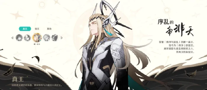崩坏因缘精灵角色帝非天,旧世纪原力掌控者,执掌秩序与混乱,击败毁世之人,连续两回合击破,平衡对立力量并维持稳定。