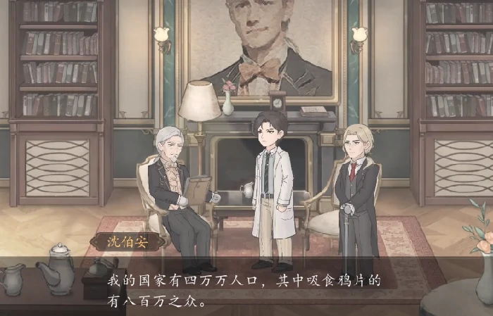 进入第六章,主线聚焦沈伯安死因调查,同步搜集相关线索。凶手为英国商人沃森,其借经商名义研制新型成瘾物质,伪装成戒毒药。沈伯安作为药理学者识破阴谋,遭沃森灭口。