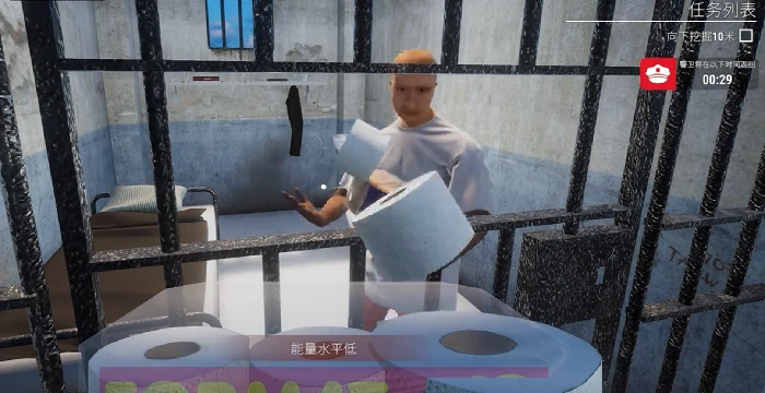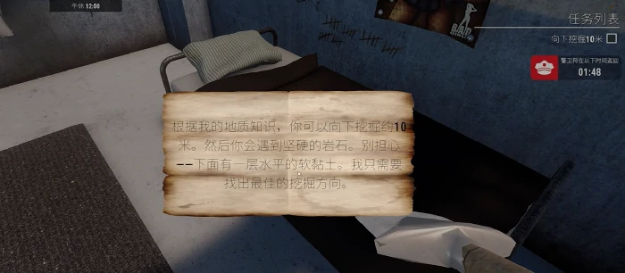 挖掘技巧:午餐时段多拿勺子/筷子,回牢房掀地毯开挖;挖时注意体力消耗,体力归零停挖;每挖一阵观察门外,防巡逻发现。