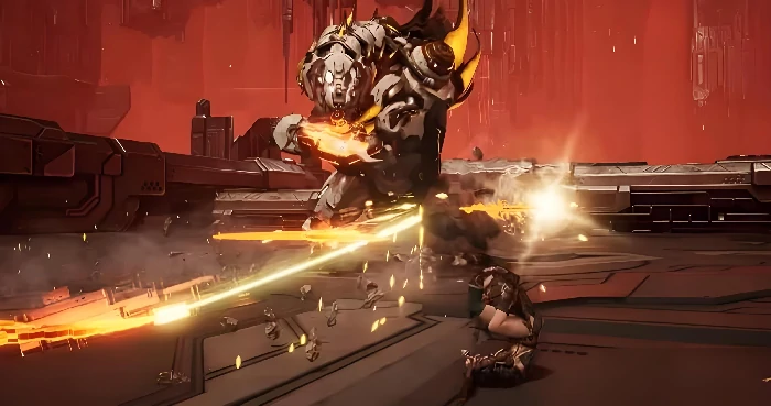 区域内遭遇首领冰蹄巨兽,高生命值,发动冰属性攻击。作战前掌握技能:发射冰锥导弹、发起猛烈冲撞。选用火属性技能或火属性玛卡参战,触发灼伤效果克制。