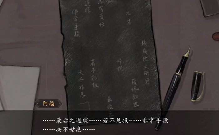 进入山河旅探第二章案发现场,调查书柜旁女性死者遗体,确认死因。搜查场景:取书桌上字条,捡碳盆内未燃尽信件残片。对话所有角色,掌握关系及背景信息,初步推断凶手身份。