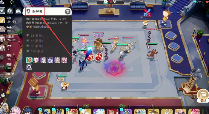 战斗开始依据生命值减伤判定,保护者属性叠至两层获28点双防增益。承受首次伤害减半,建议布置中场吸收敌方开场爆发伤害。