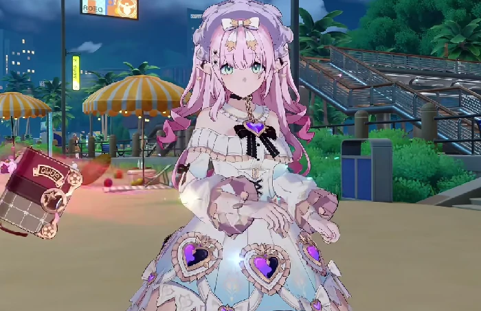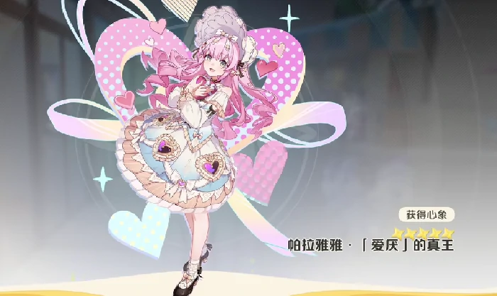 她有粉紫色长发,以独特样式束起,饰黑色恶魔角头饰,造型神秘夺目。手中常持心形礼盒,令人怜惜又心疼。其爱恨鲜明,强烈情感既是动力,也彰显内心强大。
