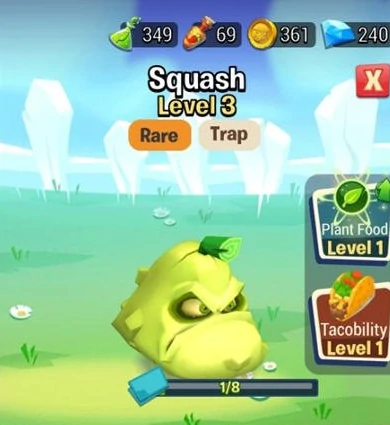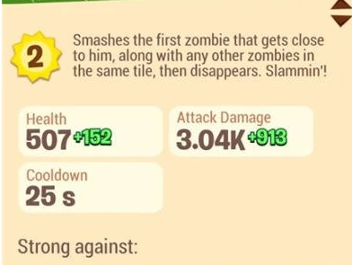 窝瓜性格火爆,见僵尸猛砸。僵尸入范围,立刻跳起重击,造成巨额伤害后消失。对比前作,新增机制和数值有调整。种植仅需两点阳光,成本低。初期阳光紧张,种植不心疼,单独僵尸可轻松解决,无需担心消耗。