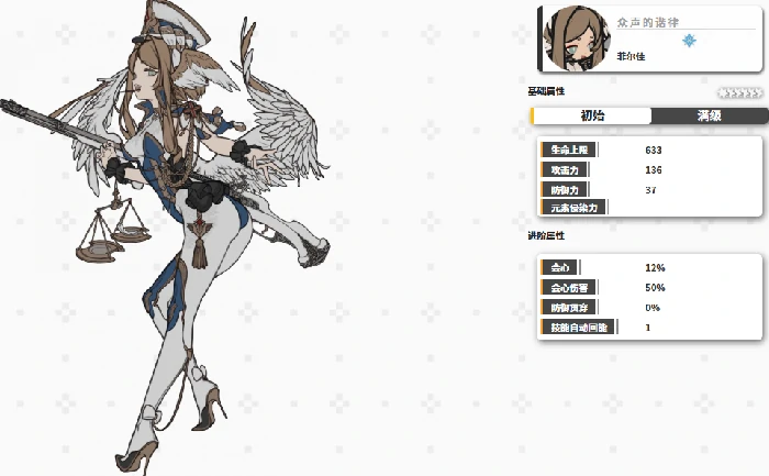 被动“自我争议”:必杀技命中触发半秒枪林弹雨及2秒冰元素伤害。技能升级后,造成冰元素伤害缩减天赋增益冷却时间,冷却10秒。升至三级,对BOSS类目标造成会心伤害50%概率触发天平仲裁,获3层增益,每层提升3.5%会心伤害,最多叠6层,持续至战斗结束。