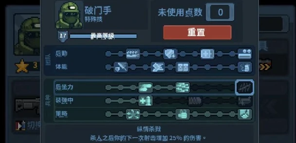 快速扫荡:持续作战用,击倒敌人提升换弹速度。纵情杀戮:击杀目标后,下一枪伤害增25%,叠加对boss伤害惊人。九丸猎弹:切换猎枪弹,立刻提高单发伤害。改进弹头:更换弹头,子弹穿透多个敌人,清怪效率高。