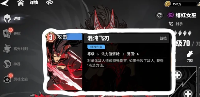 战斗技能二混沌飞刃:专注单体特殊伤害,击败敌人回复部分法力值,增强持久战续航能力。