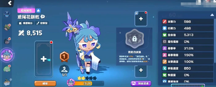 鸢尾花饼干操作上限高,熟练后打爆发伤。玩法核心蓄力攻击,命中提暴击率、扩攻距。搭配合适法宝卡与被动,后期满暴击。实战保层数不断,培养成本不低,成型后为主力输出。