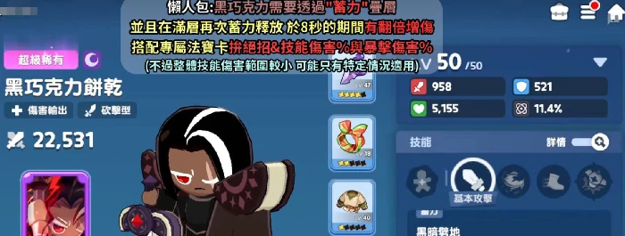 饼干人联盟手游新角黑巧克力饼干,主打蓄力机制与高倍率技能,操作需把控输出时机,理想爆发极强,以下详解玩法。