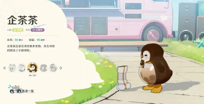 企茶茶为企鹅造型,身披白羽,围茶绿围巾,持杯状武器,脸颊泛红。背景源自茶之位面,爱泡制品尝奶茶,常于茶馆观察人类。推测具备冰与水双属性,发展方向侧重控场和辅助。