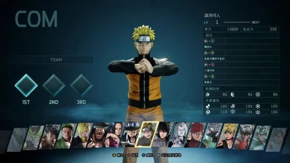 漩涡鸣人:体力15600,攻防均衡,经典技能还原,主打守护与爆发。