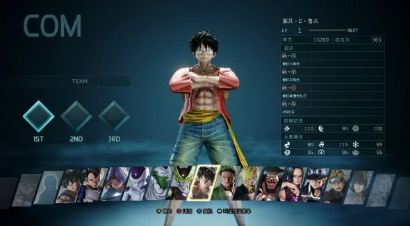 路飞:橡胶能力灵活,连招多变,伙伴增益强,团队核心角色。