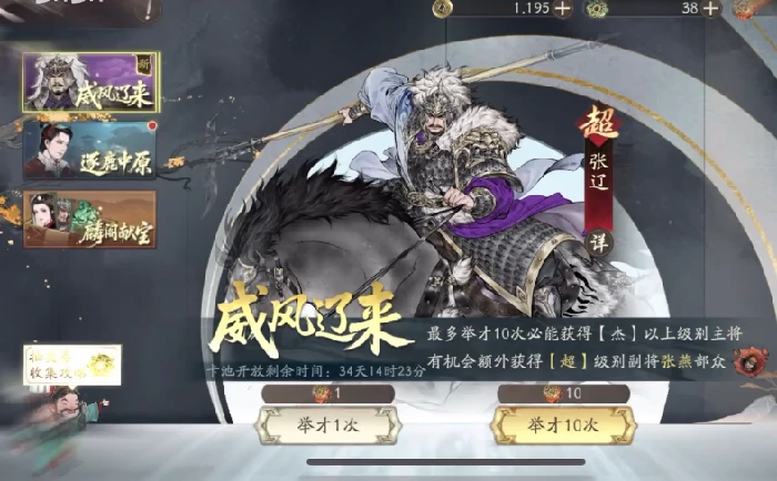 新手入门先学抽卡!三国望神州设常规/新手双卡池,新手池享十连八折,五次十连必出SSR,优先抽满拿强力武将快开局!