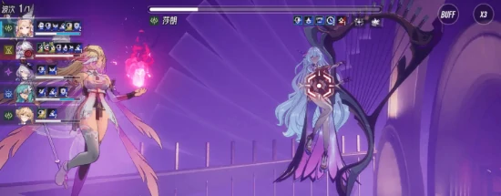 第一阶段用酣梦睡眠花苞与芙蕾雅二技能抗持续伤害,逐步压敌方血线。血量见底时凌罗开大,下一名角色普攻收尾进第二阶段。第二阶段出现花骨朵,随机标记两名角色。被标记角色行动时花骨朵未受控会触发额外行动。我方四角色带免疫标记,通常只中一个或不中。保持酣梦控场,避免队伍被控,全力输出。第三阶段优先处理花朵,否则时间到后花朵复活回血,需特别注意。