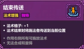 关键法术“结束传送”,释放完毕传当前位置,内置技能,传送不打断站桩,助持续输出。需解决精准控制传送落点问题。