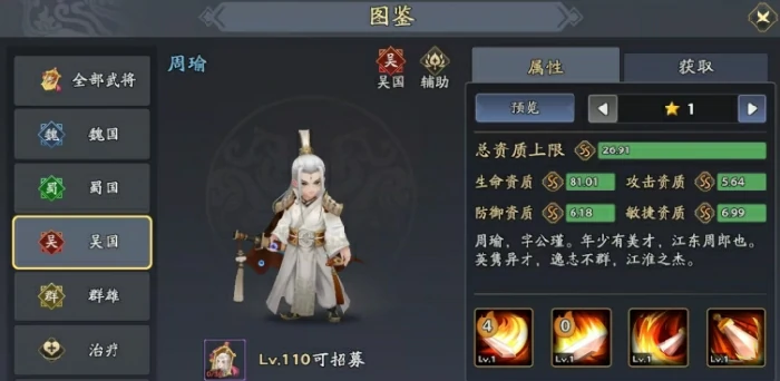 三国志异闻录中获取周瑜后,前期合理培养可使其成为队伍可靠成员。周瑜属吴国阵营,定位辅助型武将,护盾机制与生存能力实战突出,适合搭配脆皮输出队伍。