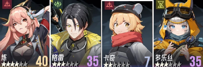 新手低配阵容:格雷+卡奇+多乐丝+炼。初期易得,炼和格雷主输出,卡奇拉怪辅助,多乐丝兼具输出与治疗,格雷大招降敌方全体防御,轻松应对前期关卡。
