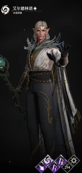 光法艾尔德林诺(永昼信徒):后期发力法师,擅群体法伤功能全,常驻10%生命恢复,给前排套盾,搭光盾菲欧娜效果佳,天赋加点按敌人血量调,选增强破防或群体治疗,穿回能套。
