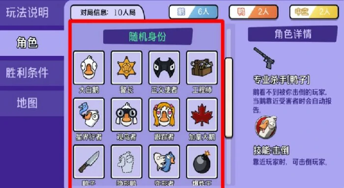 大乱斗模式更疯狂欢乐,所有技能冷却大幅缩短,鸭子能频繁暗杀,大鹅可快速报警,还有随机事件如召唤陨石攻击玩家。玩这模式别在意输赢,乐趣在过程混乱和不可预测,放松心态、享受游戏最关键。