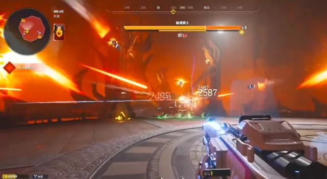 第二阶段:旋转武器范围技启动!两种规避方案任选:①站定地图中心原点;②紧贴中心绕圈跑动,严守安全区边界。旋转结束后,虚影技能按「左→右→中」循环释放,提前预判走位,抢占安全区域。