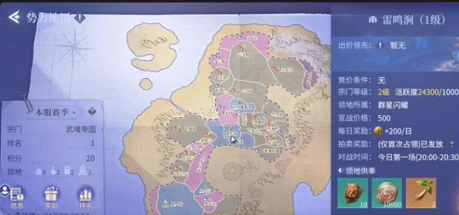参与宗门领地战,先加入实力强的宗门。宗门等级和活跃度关键,像索托城这类三级区域竞价,要求宗门已占一块二级领地且自身达四级,满足前提才能获争夺资格。进入领地战前,玩家要充分准备,完成主线剧情与日常任务提升个人修为,增强战斗优势。