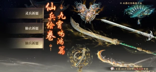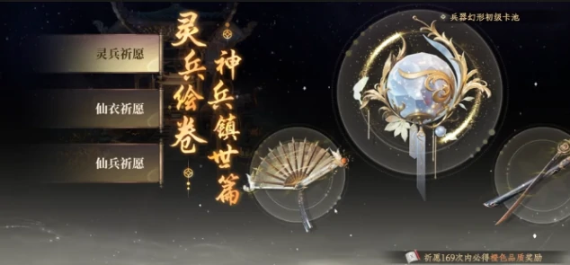 游戏抽卡分三类:灵兵祈愿产出武器,仙衣祈愿提供时装,仙兵祈愿获取强力武器。追求炫酷武器选灵兵与仙兵卡池,偏好时装选仙衣祈愿。