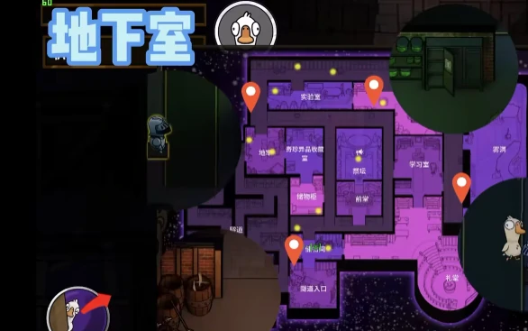 地下室设传送机制,紧急追击时用传送门瞬间换位,打乱对手节奏。但传送落点可能遇鸭子商量战术,易被集火。完成献花任务开隐藏门,内有额外任务、可作藏身点,有玩家借此躲过追杀。