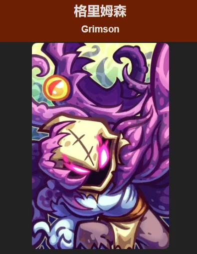 推荐格里姆森:机制类似沙塔,常规输出一般,低血量爆发极高伤害,以血换输出。技能变身效果带来回血和“吃人”能力,大幅提升生存率,难被击杀。不太适合硬扛大型怪物,在小怪群中持续作战久。应对Boss时搭配其他英雄共同作战。大招造成300点真实伤害,吞食敌人缓解战场压力,适合高压局面。