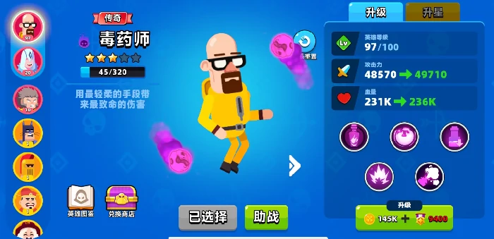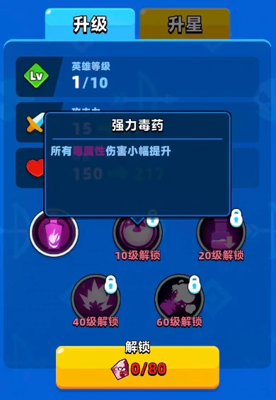 60级关键技能特调毒药,每次攻击额外叠加1层中毒,提高中毒层数上限。快速堆叠中毒,极大增强输出。升星有额外提升。