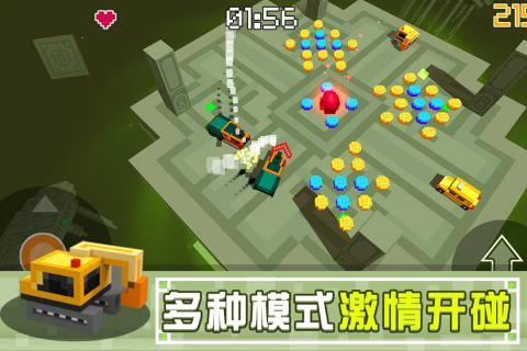 像素风休闲手游,用虚拟摇杆操控碰碰车,撞飞对手出赛场。操作简单,小朋友快速上手。明快像素画面,碰撞触发像素碎片飞散。地图含天台、悬崖等场景,部分带陷阱。改装车辆提升防御攻击,更换跑车、卡车等车型。
