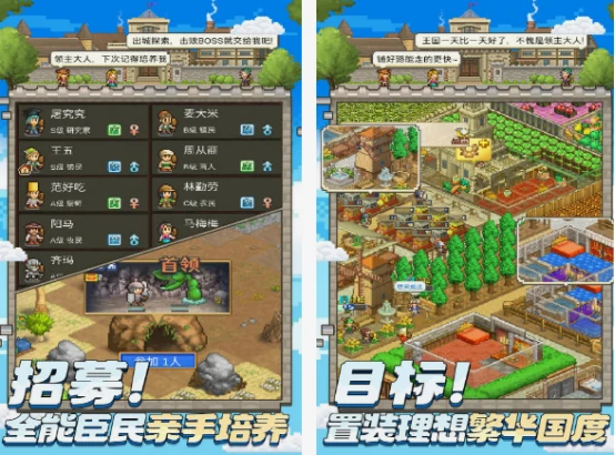 化身王国建造者与管理者,采用像素画风,玩法丰富。自由规划城市布局,发挥空间设计能力;建造各类设施,逐步扩张王国规模;融入策略对战,应对怪物侵袭,考验布防与指挥能力。