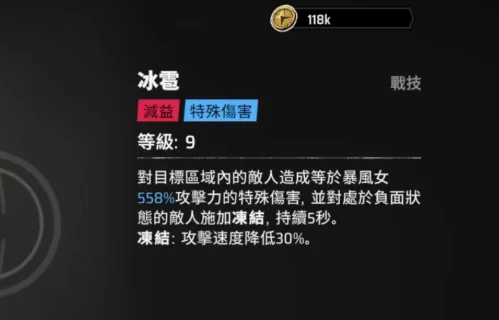 战技暴雨:造成特殊伤害,附加10秒潮湿状态,降低目标伤害;战技冰雹:区域特殊伤害,目标负面状态时附加5秒冻结效果,大幅降低攻击速度。双技联动限制敌人输出,群体战斗优势显著。