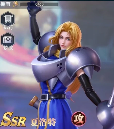 夏洛特:初始输出优秀,战斗开始进入暴击状态;使用重拳技能后发动必杀技对单体造成物理伤害,暴击时获得10%闪避加成;怒气技能对全体敌人造成伤害,暴击状态下使用削减敌人防御力,可作为辅助型角色。