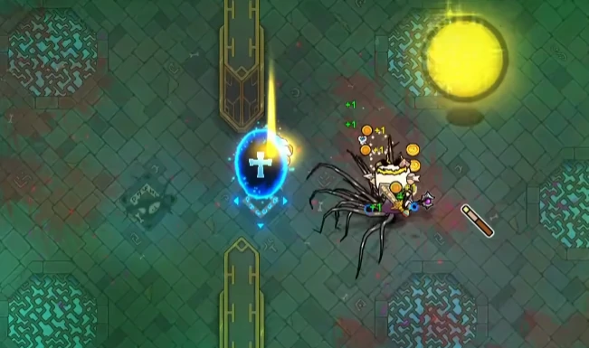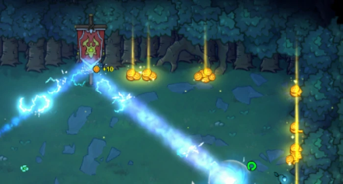 实战弹幕密、怪干扰,金币常不够,得频捡硬币,走位是关键。搭闪电疾行,借闪电球无敌速移,免伤高效捡金币。