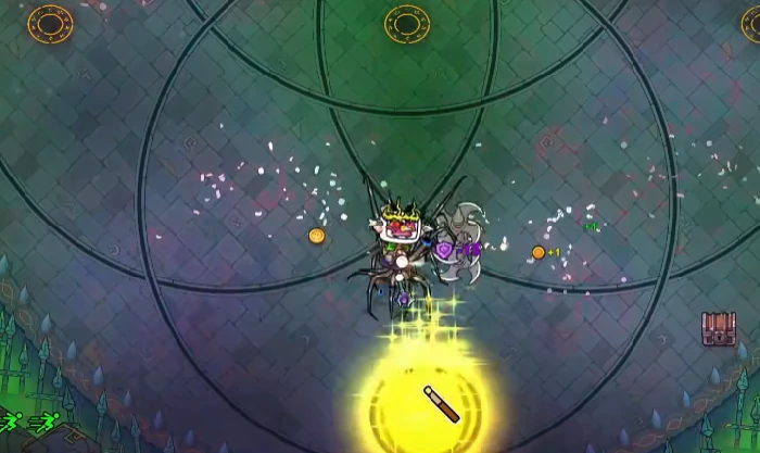 法术攻击核心,发射硬币造飞弹伤害。硬币越多后期越强,发射20%概率触发金币效果,耗1金币提10%法伤,法术结束金币掉落可再捡。