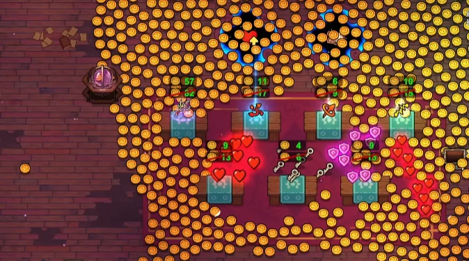 或用黄老丙套装,瞬移全场捡钱,机动性大增。玩前攒够初始金币,装备淘金者手套、金杯,击倒敌人捡硬币,稳金币数。淘金者软夹回生命,实现输出生存循环。