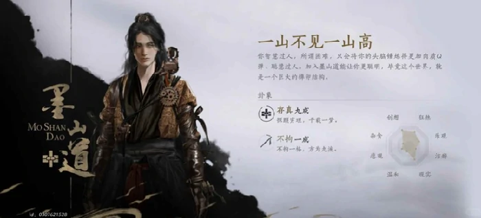墨山道讲究材料认知与辨析能力,把握此道可变化无穷。自由建造时可储备更多图纸,数量优于其他门派。深谙相生相克之理,常融合多种属性,形成复合效果。在外游历时常隐匿身份,承墨家传统——踏实做事、不慕虚名,也避免引起黑白两道注意,防范技术成果落入恶人之手。