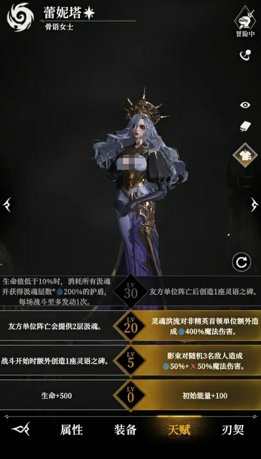 天赋推荐右侧路线:初始能量提升,影束目标增至随机3名敌人,改善开局与清场;20级天赋强化能量技对非精英单位清理效率;30级后友方阵亡召唤灵语之碑,维持能量技空窗期战场影响力。