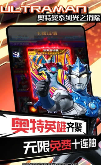 融合经典消除机制与奥特曼主题,玩法轻松有趣,支持单手操作,便于通勤或等待时体验。每位奥特曼配备独特技能,用于消除方块,视觉效果绚丽,可加快通关节奏。游戏充满童年动画回忆,怀旧氛围浓厚。玩家可借助角色强大技能快速清空方块,感受独特消除乐趣,还有机会解锁新奥特曼角色。