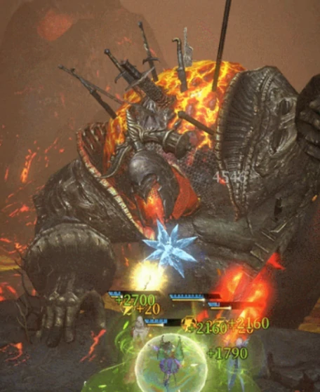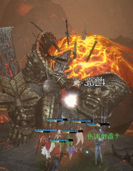 解析技能:普通攻击全体物理伤;岩浆状态附加魔法伤+灼烧,每2秒持续掉血,务必规避攻击范围。