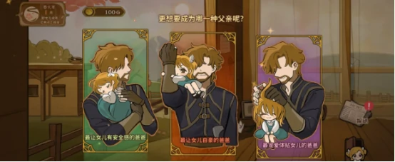 评价分数与结局密切相关。总评分低于50分进入“爱宝爸爸”固定结局,有专属剧情对话与触发条件。50到100分之间结局多样,女儿可能组建幸福家庭或人生孤独,体现多线叙事风格。