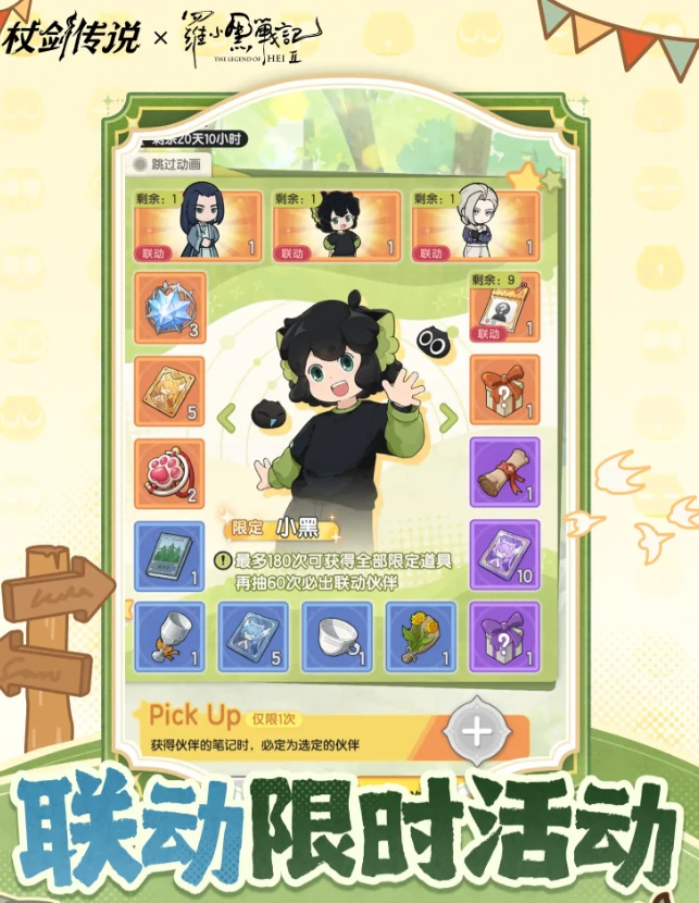 杖剑传说×罗小黑战记2联动10月30日开启,跨次元冒险同步上线。登录领福利,小黑、无限、鹿野、哪吒四角色加入,各带独特技能机制与战斗定位,强化阵容策略。