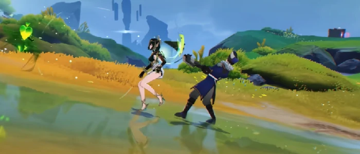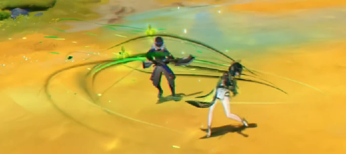 普通攻击“游蚰吐信”:连续四段踢击,造成草元素伤害。激活蛇行状态,消耗体力高速移动2.5秒,退出时释放额外草元素攻击。蛇行中使用元素战技或冲刺不中断状态,提升机动性与战场应变。