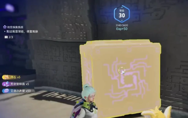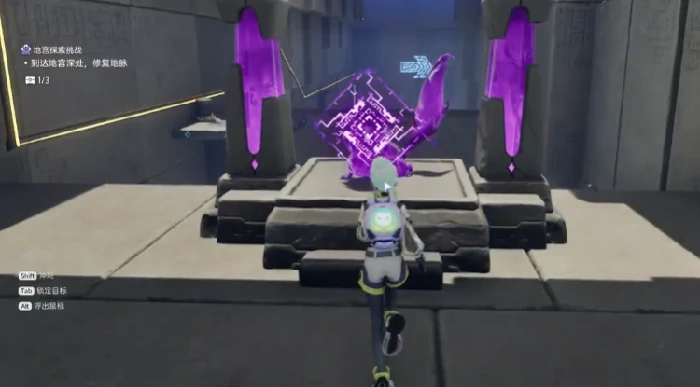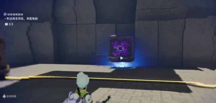 以腾云驾雾地宫为例,进入主区域先激活大门电力设备。用紫色电箱推左侧普通木箱到指定位置连通电路。远端电箱位置是第一个宝箱所在地,电箱摆放不正确电流无法流通。多次调整位置至电路导通,大门打开。向前走到左侧平台,借柱子攀爬至石块区,顺路径找紫色能量球,按交互键充能,等移动平台靠近后跳上去,随平台前行进入下一区域。