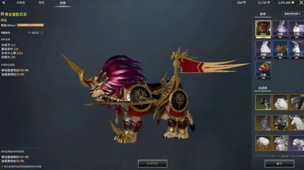 刻印系统先制作魔法赋予卷轴,提升时装和装饰品属性,增加攻防血、暴击率、攻击速度等。燕尾服刻印加79点攻击,高等级刻印可带来120攻击和300防御。平均升级所有坐骑,黄金雷欧尼亚满级加112点攻击。