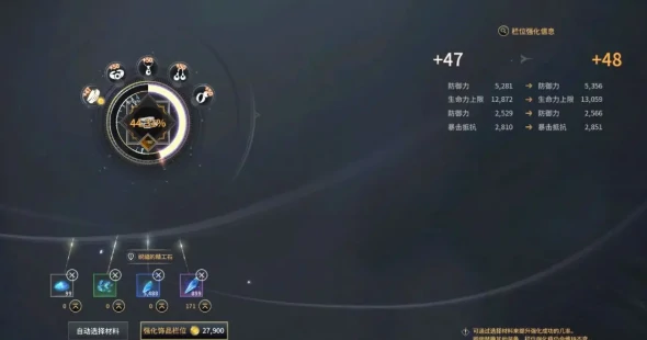 饰品栏强化40%-60%成功率即可尝试,47级升48级,生命上限和防御小幅增强,单次消耗约两万多金币,性价比高。装备强化后,输出职业附魔堆攻击和暴击伤害,坦克职业侧重防御与生命值。