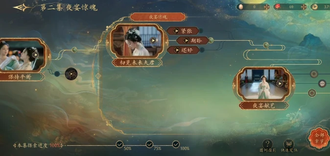 初见圣上,情绪选紧张,显单纯自然,提升好感;夜宴献艺,优先展歌艺,独特易出彩。