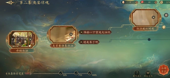 开局汤泉沐浴,直接跳过,节省时间;服饰选青色系,贴合新人身份,留好印象。