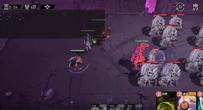 第二套阵容:类人体、月亮女孩为核心。月亮女孩当输出核心,用第一技能放导弹打范围伤害,给敌人挂负面状态。类人体召唤四个宝宝单位,承担前排压力、干扰对手。组合策略清晰,分工明确,有承伤能力、增益效果,战术性能可靠。缺角色用月光骑士替换。