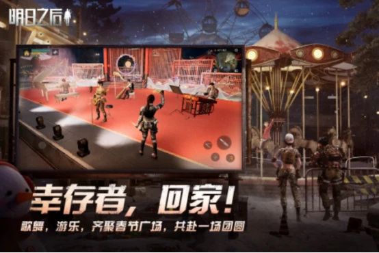 末日背景战火蔓延、病毒肆虐,幸存者需重建家园、寻找亲人、协作互助。所有幸存者成功重返家园,可在宽阔广场庆祝团圆。屏幕右下角设武器切换与移动操控区域,助玩家灵活应对险境、突破重围。